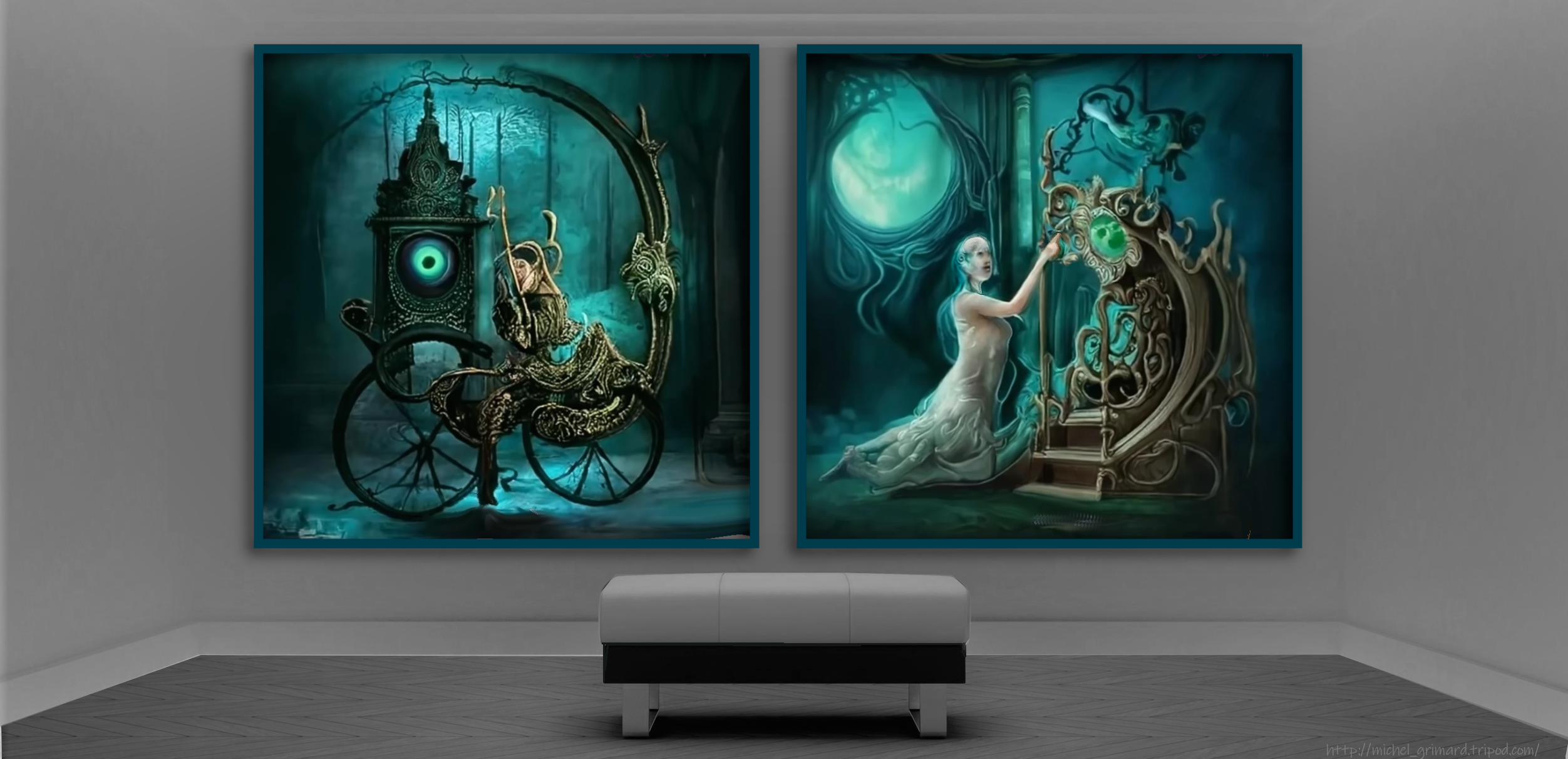 Après six mois, j'ai mon titre de publication pour cette suite surréaliste qui est inspirée de l'art de Remedios Varo. Comme le style n'est pas assez radical et qu'on retrouve des similitudes du code visuel dans d'autres séries, je ne peux pas en faire une artiste virtuelle alors j'y vais pour des variations à partir de cette source.