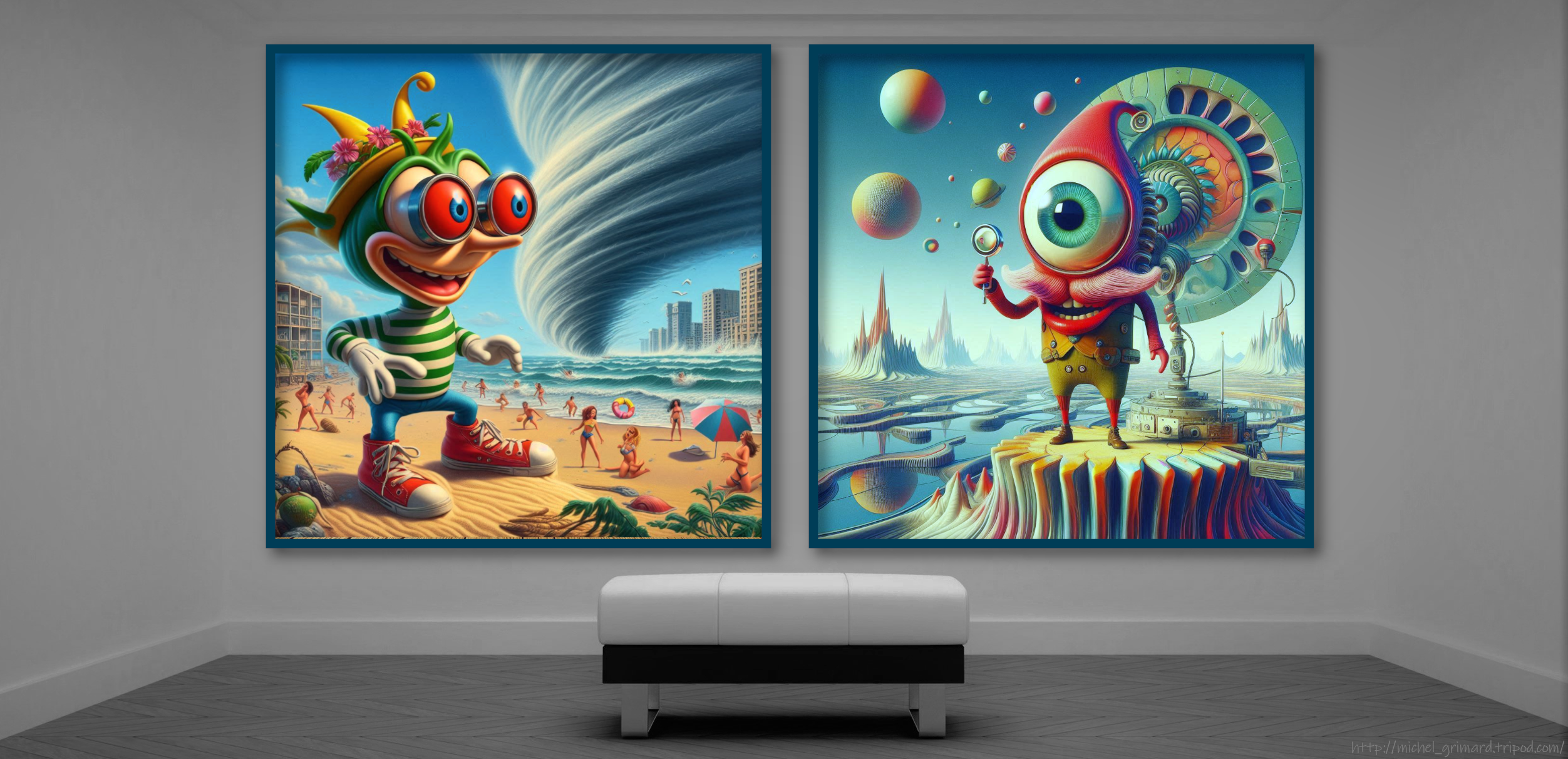 Ça, c'est en référence aux propos sur mes tentatives de contournements de la pudeur du filtre sémantique grand public de l'IA. Finalement avec la baignoire et la baigneuse avec les miroirs, l'IA a toujours déjoué ma mise en scène et je me suis tanné! Ça a produit quelque chose d'intéressant mais pas assez pour une série. Là je refais le coup avec cette fois la baigneuse de plage au lieu de baignoire!